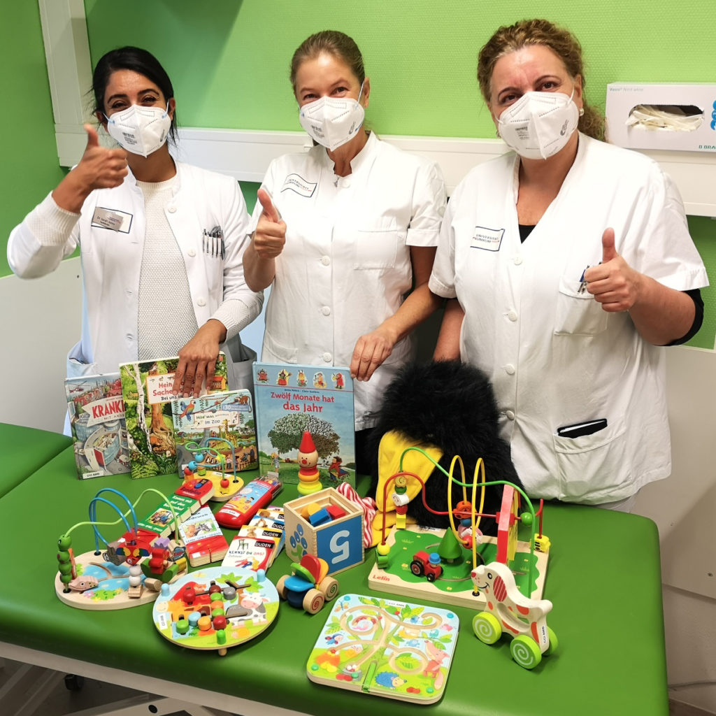 Für die CCI Kinderambulanz hat PROimmun neue Bücher und Spiele gestiftet, damit den kleinen Patienten zwischendurch nicht langweilig wird. Darüber freuen sich auch die Krankenschwestern, die immer für die Kleinen da sind.